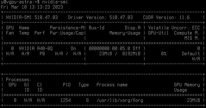 Проверяем, что драйвер установлен и видит vGPU-профиль видеокарты: