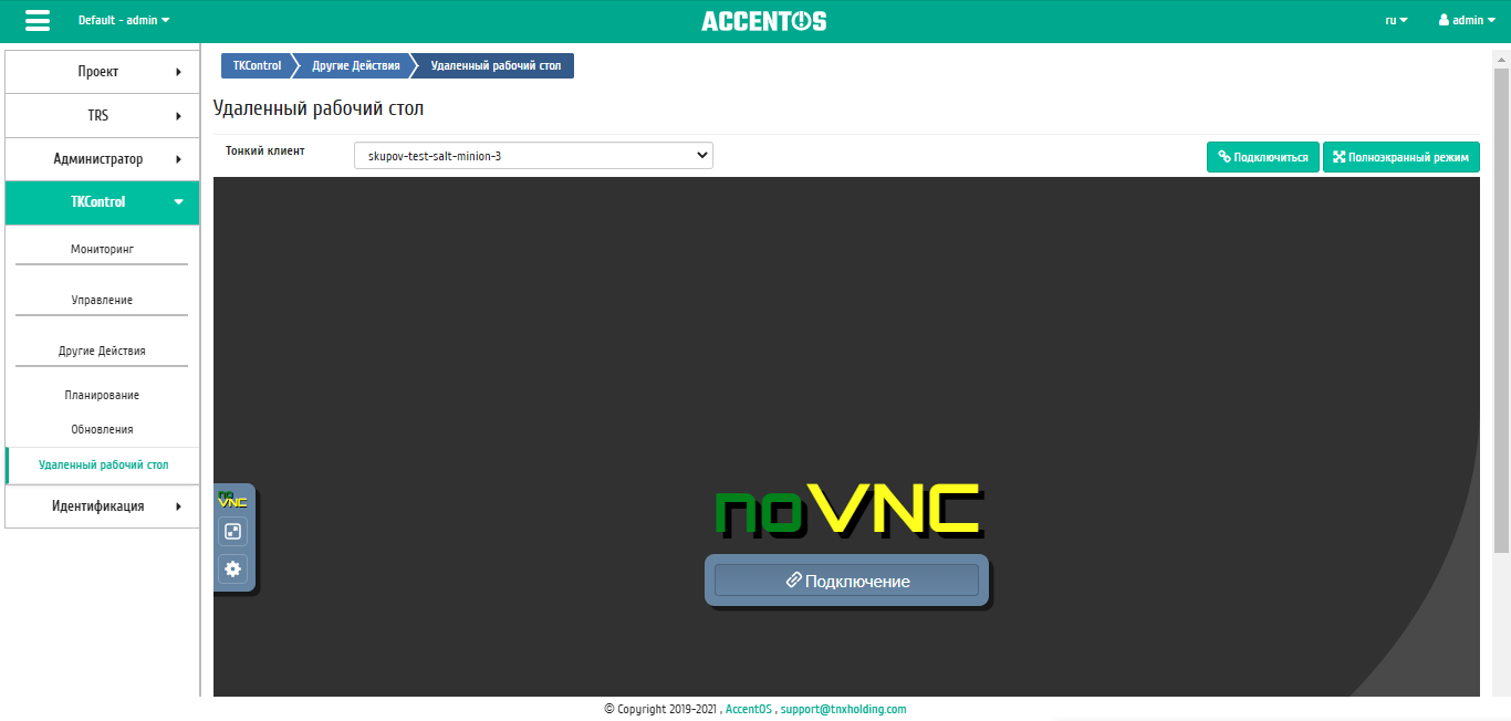 На вкладке имеется возможность выбрать нужный тонкий клиент из списка доступных и перейти к его консоли нажатием на кнопку «Подключиться». В открывшемся окне введите VNC пароль: