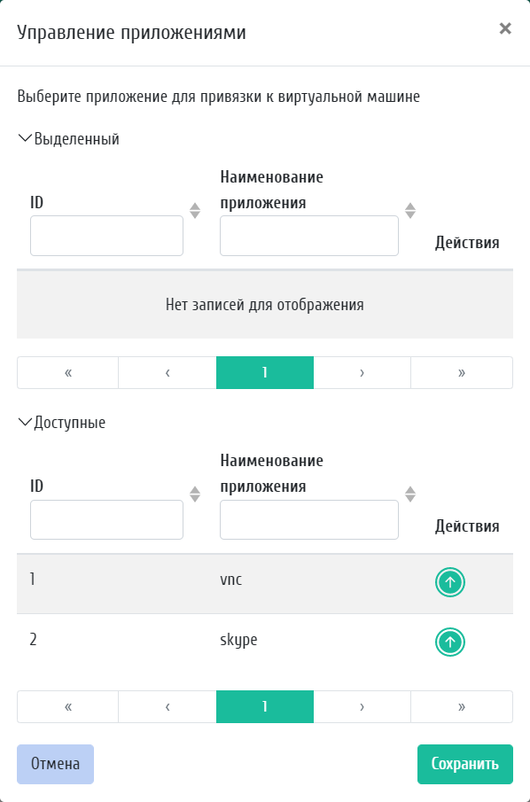 | 1 | Привязать приложение | Привязка зарегистрированного приложения к выбранной виртуальной машине. |
