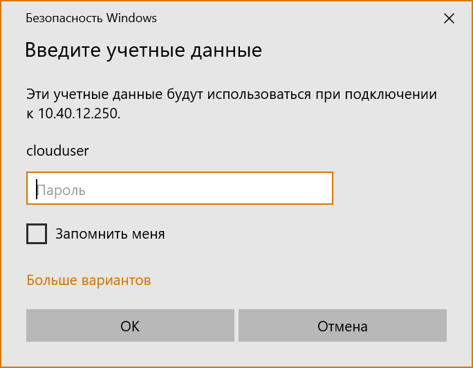 При подключении открывается окно авторизации для подключения к удаленному приложению:
