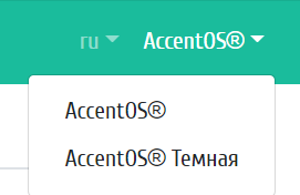 Имеется переключатель, позволяющий изменять цветовую схему темы интерфейса, для выбора доступны стандартная цветовая схема и темная. Темная цветовая схема предназначена для работы с интерфейсом в условиях слабого освещения.