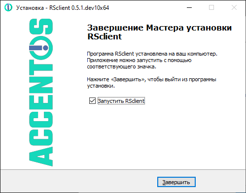 После успешной установки в окне завершения по умолчанию установлен флаг запуска программы: