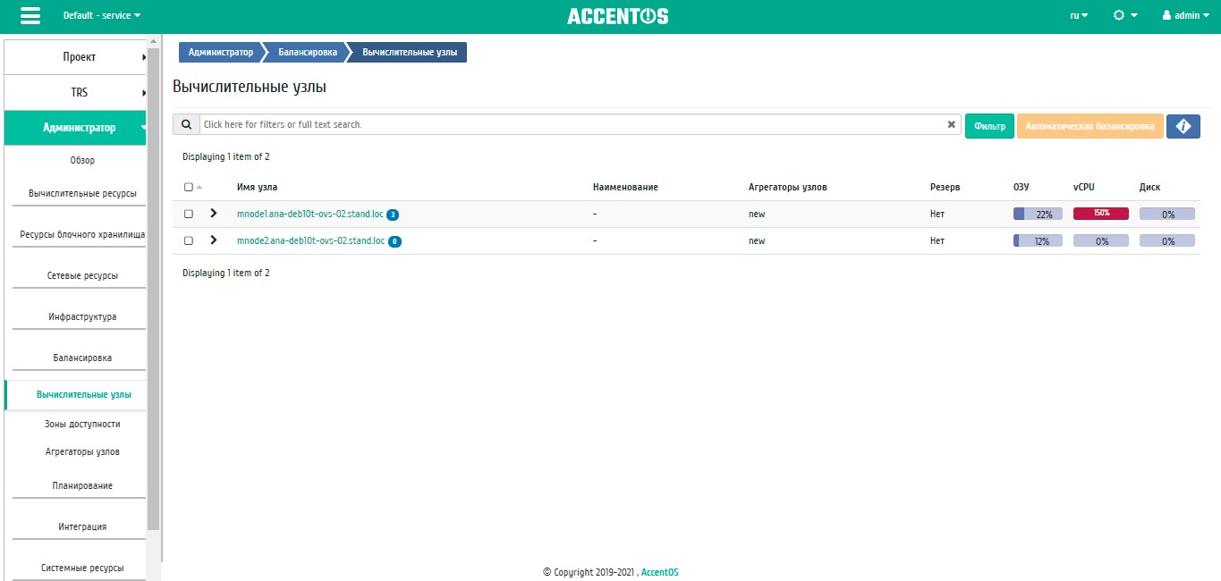 Выберите необходимые вычислительные узлы и запустите групповое действие «Автоматическая балансировка»: