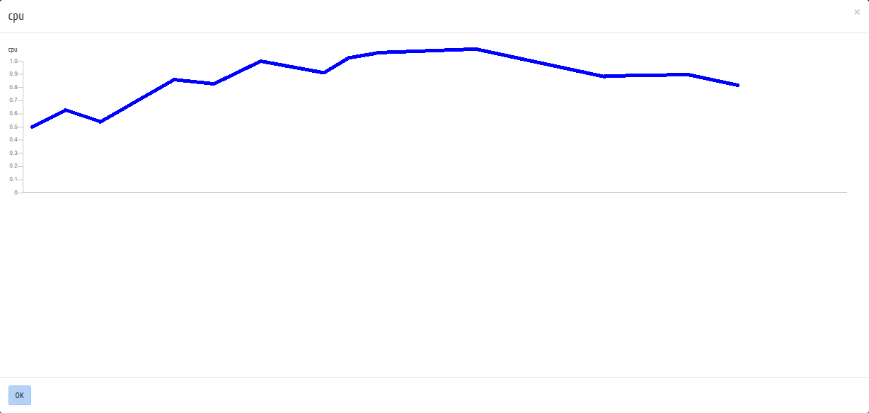 Каждый из графиков кликабелен, благодаря чему можно максимально увеличить и просмотреть каждый из параметров виртуальной машины: