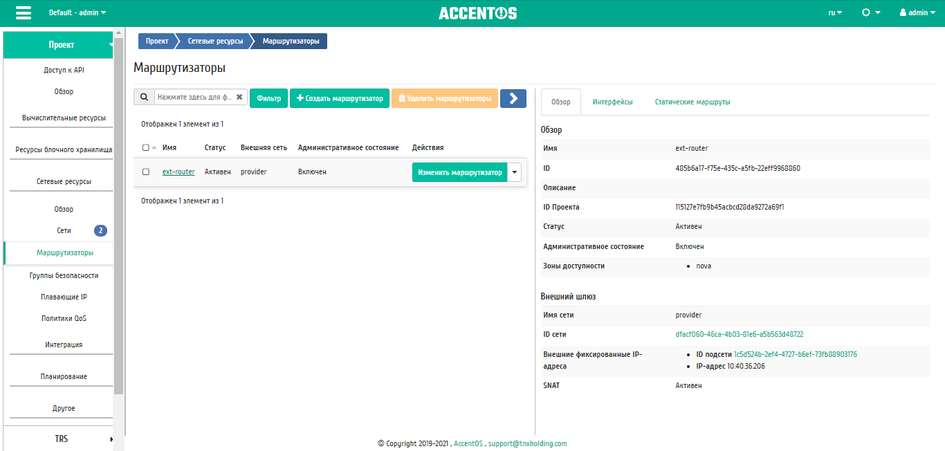 Следуйте указаниям на странице мастера, введите необходимые параметры. Завершаем процедуру создания кнопкой «Создать маршрутизатор». После чего корректно созданный маршрутизатор отобразится в общем списке. В противном случае система вернет Вас в окно мастера с указанием причин невозможности его создания.