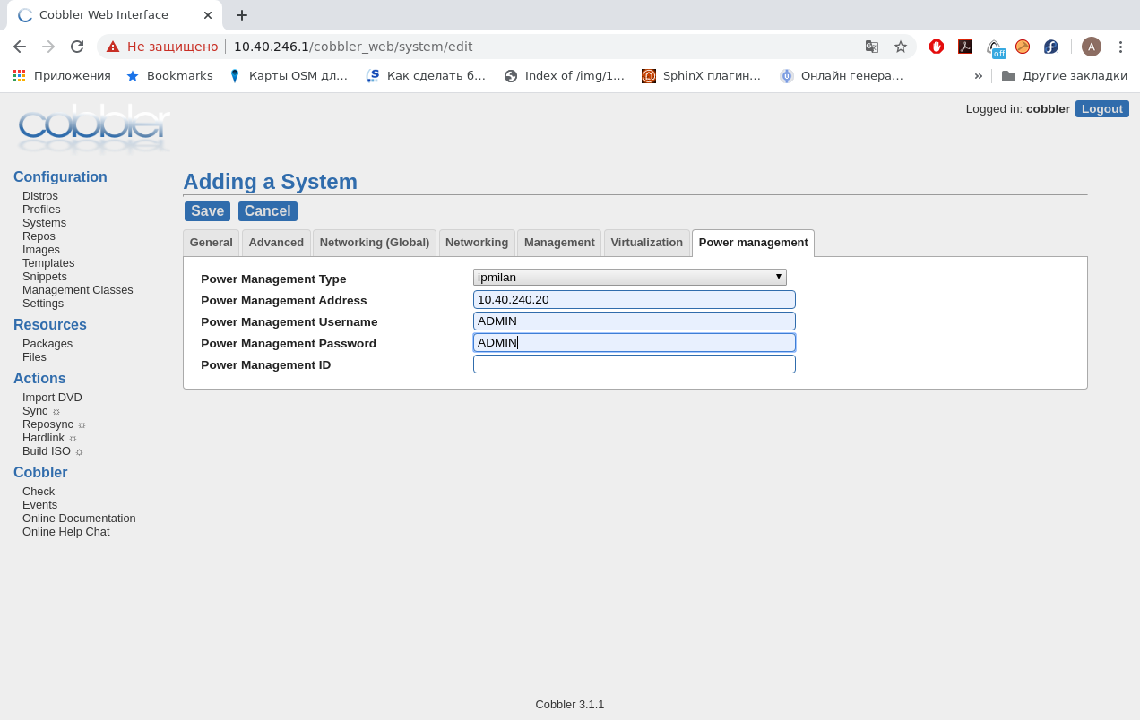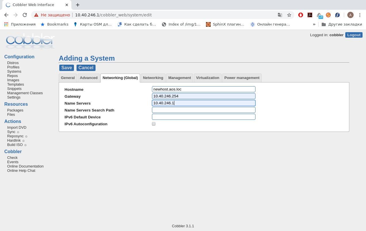 - “Name Servers” - IP-адрес сервера Cobbler.